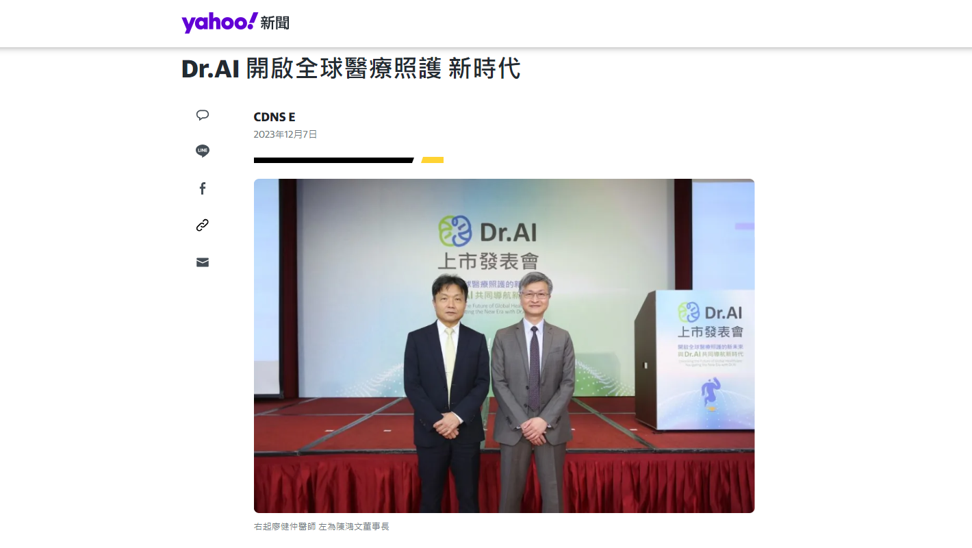 Dr.AI 開啟全球醫療照護 新時代